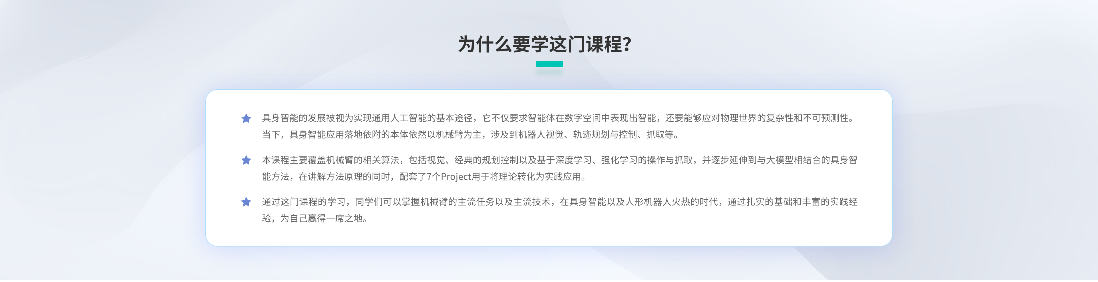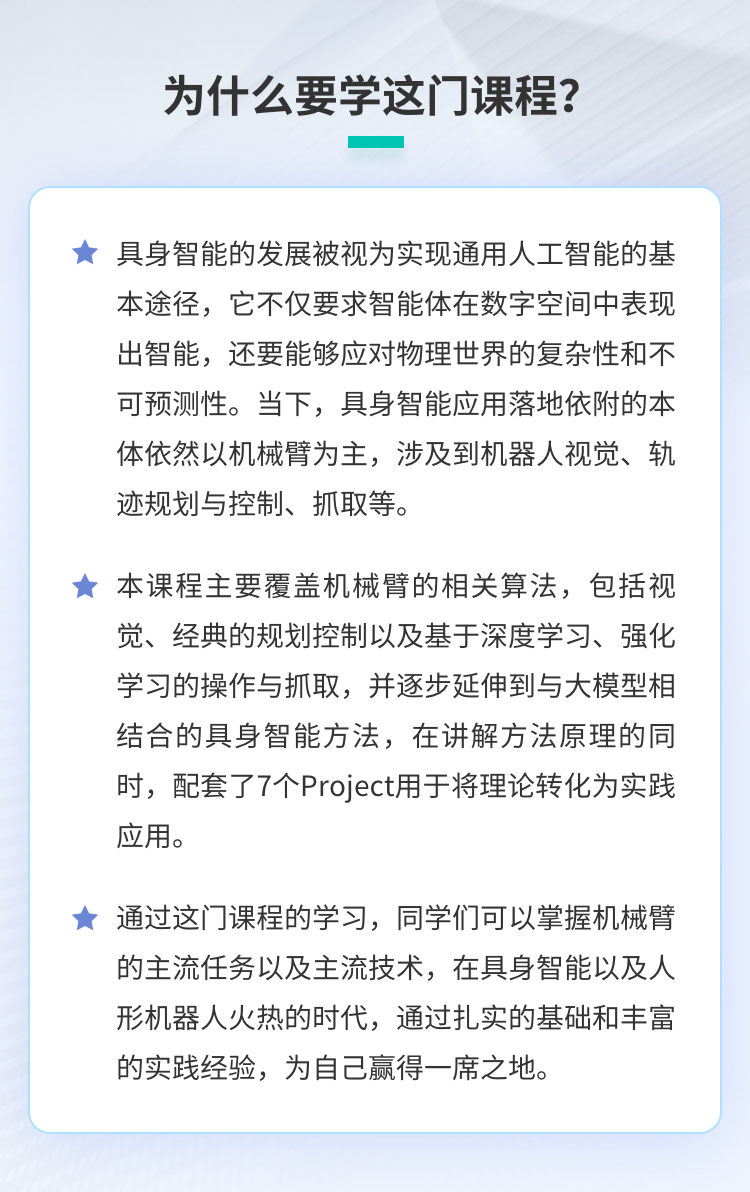 课程围绕机械臂抓取核心任务,设计了从经典到前沿的7个实践项目,系统掌握操作与抓取技术演进